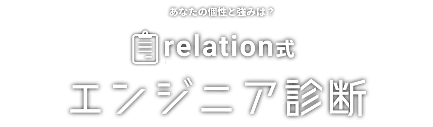 relationには、会社から「こうあるべきだ!」と押し付けるルールはありません。だからこそ様々なタイプのエンジニアが在籍し、その全員が自分らしく、個性を発揮しながら活躍しています。この診断では、あなたの性格や行動タイプから「エンジニアとしての属性」と「似た考えを持った先輩社員」がどう働いているかを知ることができます。